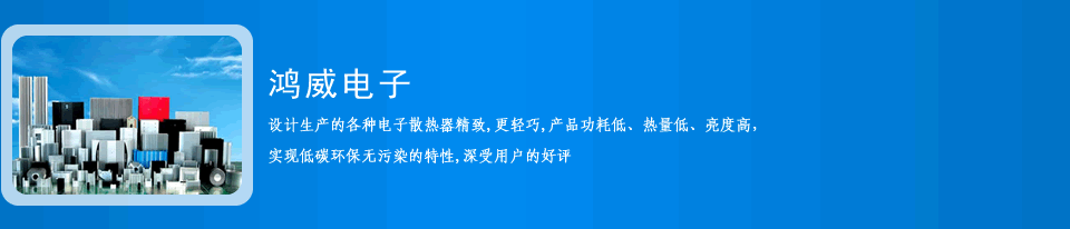 鴻威電子散熱器廠擁有一批具有豐富經驗的高素質科技人員,擁有多年生產電子散熱器的豐富經驗,型材散熱器具有設計新穎、抗蝕性、耐磨性好、節(jié)能環(huán)保、重量輕、散熱性能好的特性